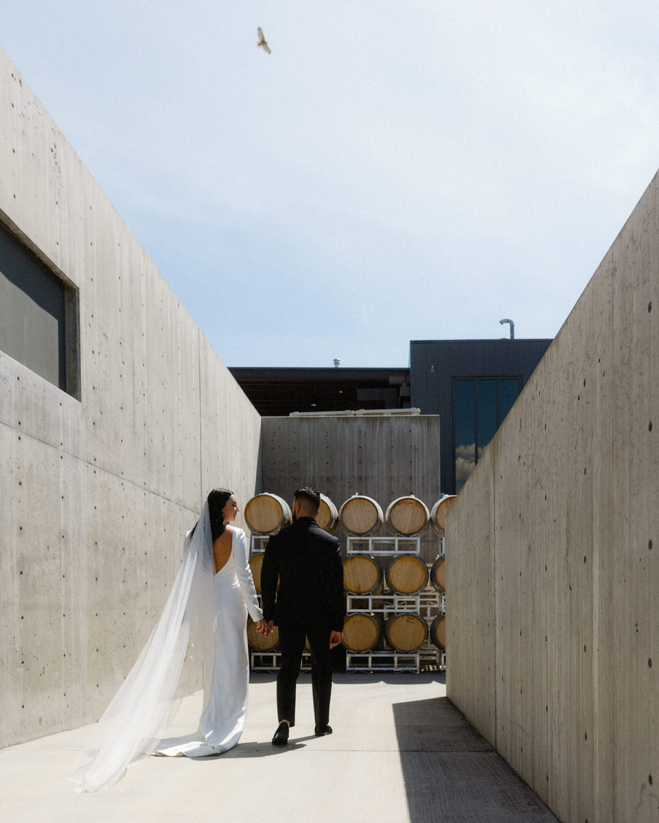 Planned by Francesca of Smitten Events, this wedding had us braving the hot summer sun radiating off the concrete at 50th Parallel Estate Winery—although you could argue that it was actually this beauty of a duo here who were turning up the heat. Natasa & Ghaith were actually married prior to planning their Summerland celebration and broke the surprising news during their ceremony (which actually turned out to be a vow renewal complete with an amazing water view).