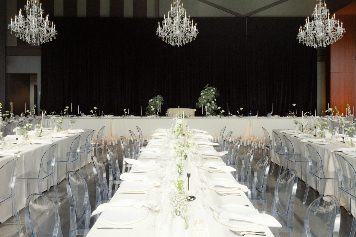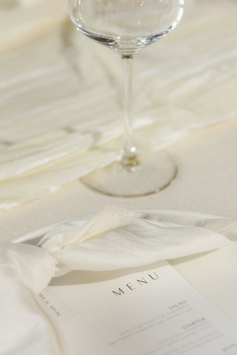 The style of the decor is modern romantic, everything is in cream and white tones with touches of black structured pieces. Simplicity and clean lines were key in picking out the decor theme.