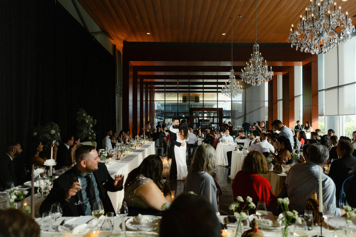 With the big reveal done and dusted, we made memories with their family and friends during cocktail hour, walked through the incredible reception room that Smitten Events had orchestrated for the couple, and listened to stories about connection and love. We got silly and serious during a Vogue style shoot in the adjacent tank room and broke out in traditional Serbian and Iraqi dances all night long. Summerland, BC never saw it coming.