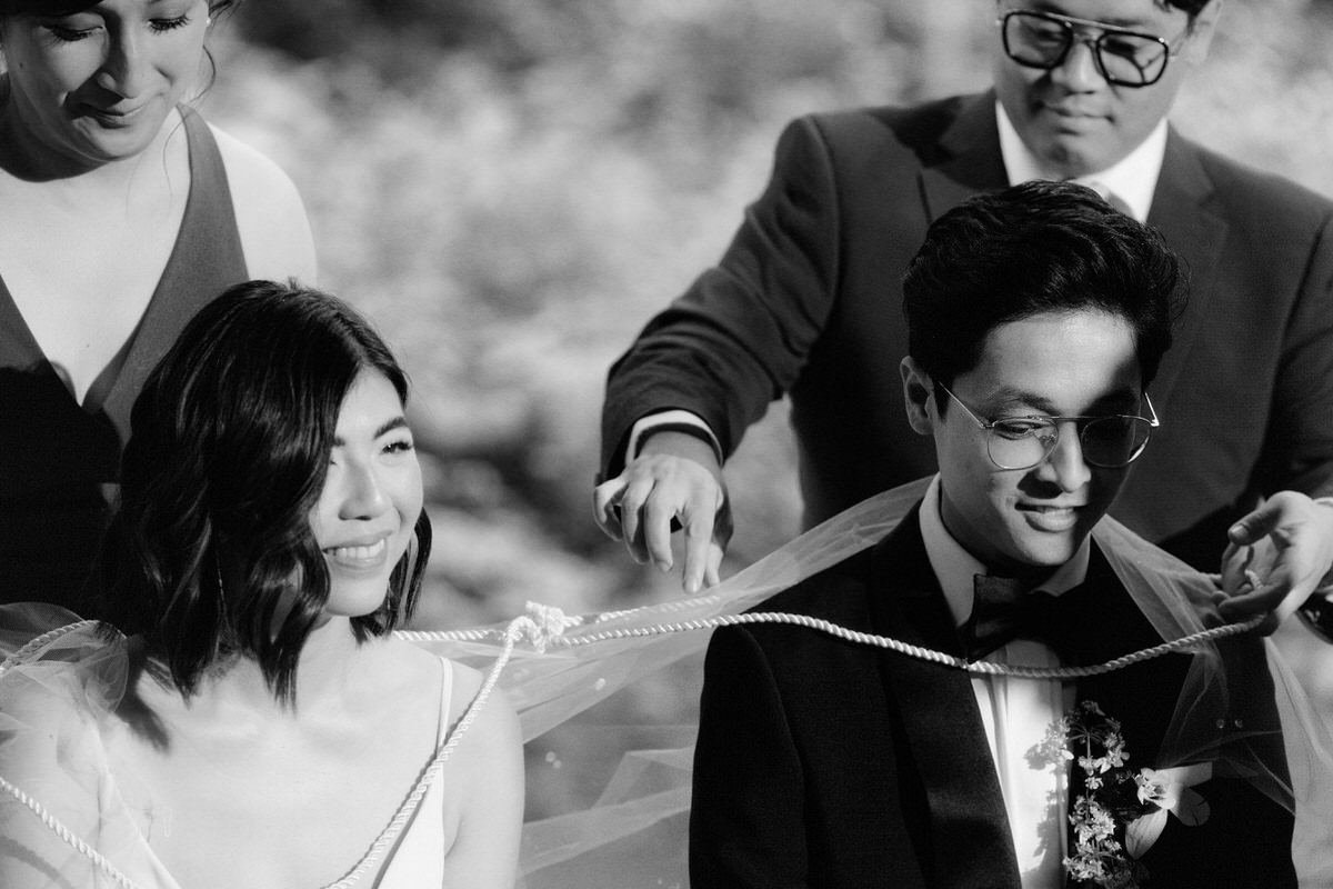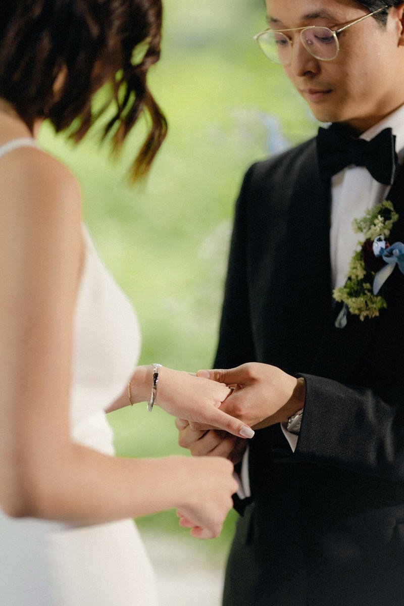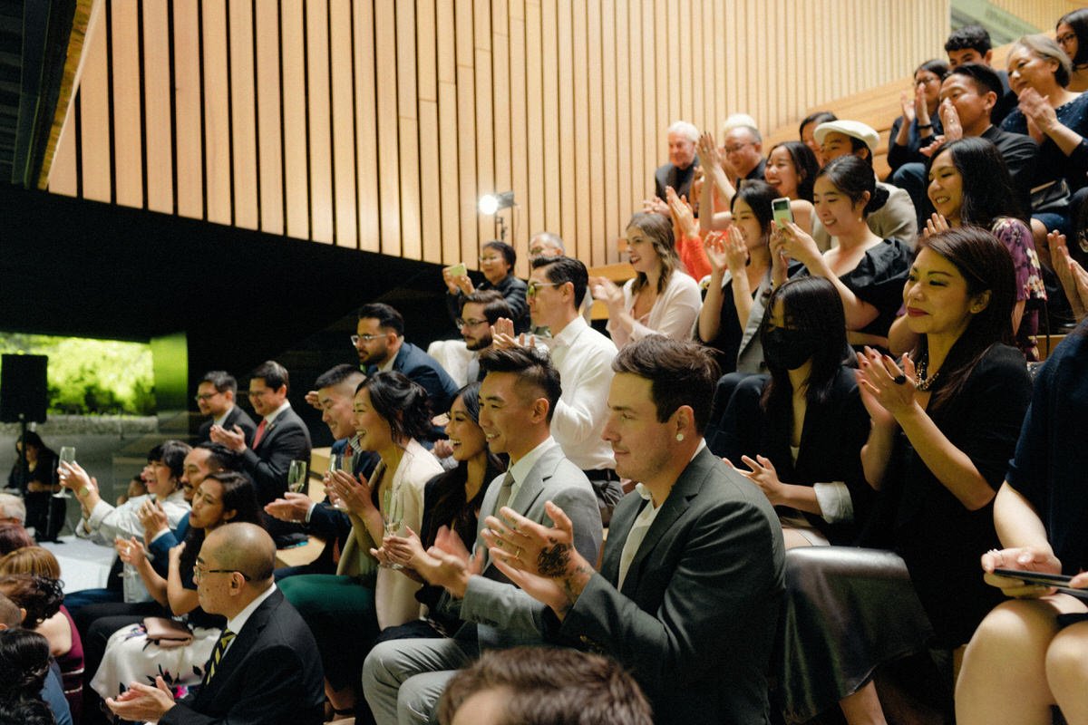 T&M: “We love the Audain because it puts beautiful architecture right in the middle of nature. Even though it’s design-forward, there’s a lot of warmth to the space because of the use of natural materials and the natural light it gets. We wanted the element of an outdoor wedding in a venue that could speak for itself.”