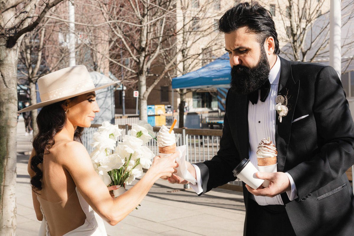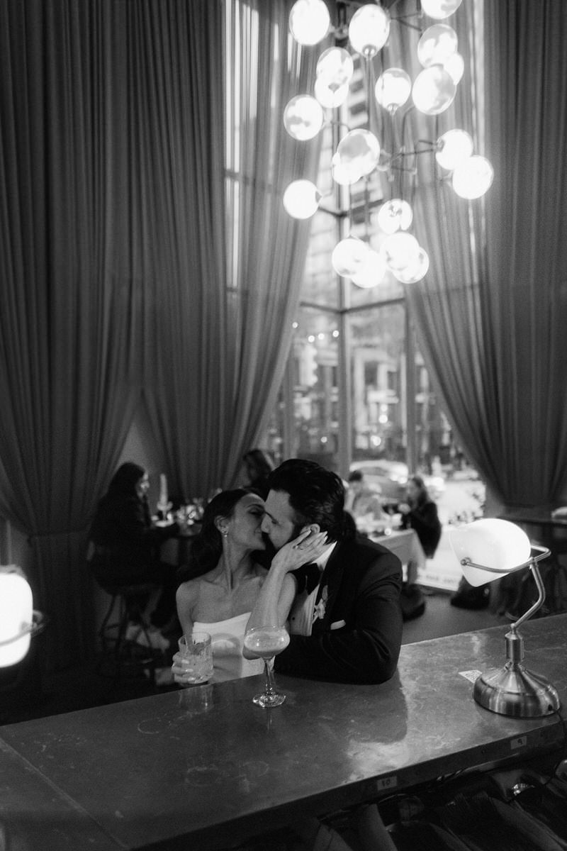 After the ceremony, we visited a favourite bar of theirs, and they kissed and enjoyed drinks by lamp light at Per Se Social Corner. The space they held for each other and these moments couldn’t have been more them. Needless to say, I encourage all of you married-to-be / engaged folx to do whatever feels right to you on your wedding day just like Alaina & Nasser here.